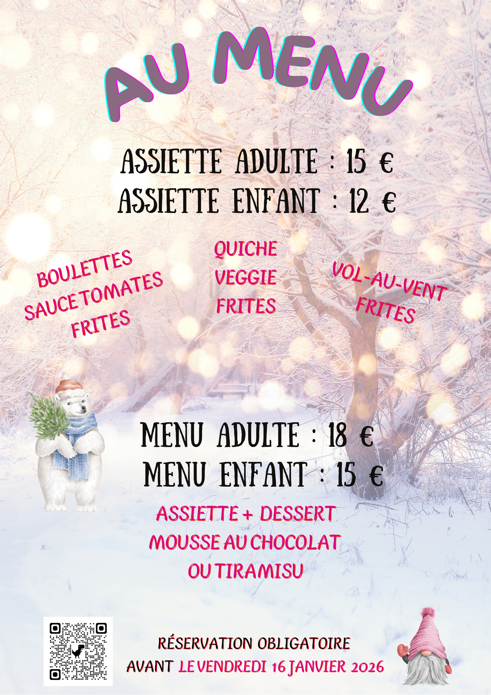 Vu le peu de réservation, nous vous informons que le repas d'hiver est annulé. Les parents, qui avaient réservés, seront bien entendu remboursés.